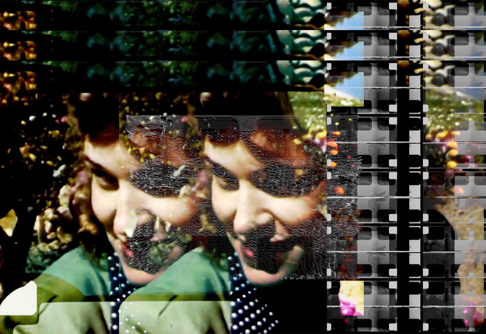 Through a succession of grainy image fragments, ambient noise, burned or erased film stock, the film evokes supposed personal archives—forgotten holidays, anonymous faces, domestic scenes. But nothing is real.